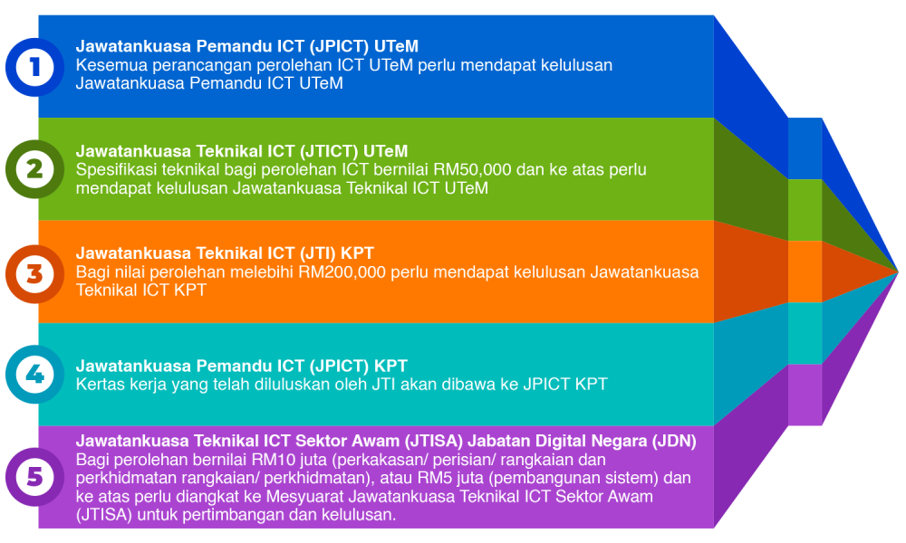 - Kelulusan adalah di peringkat Jawatankuasa Pemandu ICT (JPICT) UTeM dan Jawatankuasa Teknikal ICT (JTICT) UTeM sahaja.